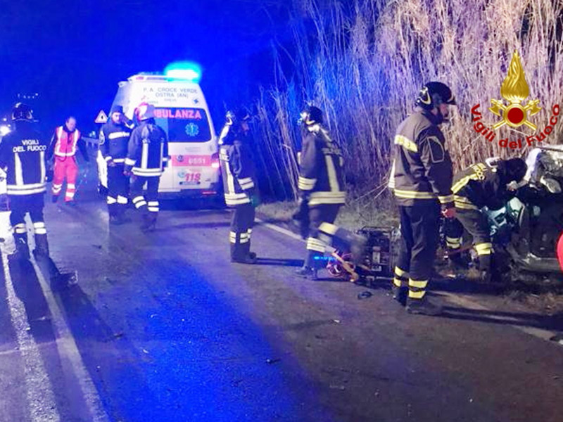 L’autotrasportatore invece, quarantottenne anch’egli di Corinaldo, è finito in una scarpata: successivamente è stato trasportato in codice rosso all’ospedale regionale di Torrette di Ancona dopo essere stato estratto a fatica dal suo mezzo dai Vigili del Fuoco, intervenuti assieme ad ambulanza e Carabinieri sul posto.