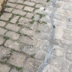 Ma vorrei evidenziarle che oltre a queste indicazioni che ormai appaiono note, all’interno della cinta, in corrispondenza della medesima area, si sono aperte nuove fenditure, sia nel torrione sia nel selciato che costeggia la cinta muraria. Nel particolare a chi scrive è apparso fuori luogo ed inadeguato chiudere una ampia spaccatura presente in quella via, lunga una decina di metri, ed ampia 4/5cm, semplicemente con del cemento (allego le immagini).