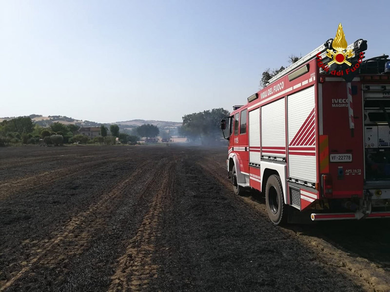 I Vigili del Fuoco sono stati chiamati all’intervento verso le ore 16 di lunedì 28 giugno a Corinaldo, per un vasto incendio di un campo di grano. Si tratta di circa 8 ettari di area coltivata e non ancora mietuta.