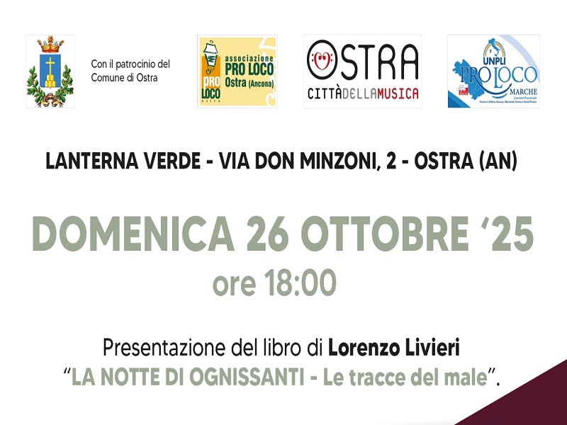 L’Associazione Pro Loco Ostra aps ospita la presentazione dell’ultimo libro di Lorenzo Livieri con il patrocinio del Comune di Ostra.