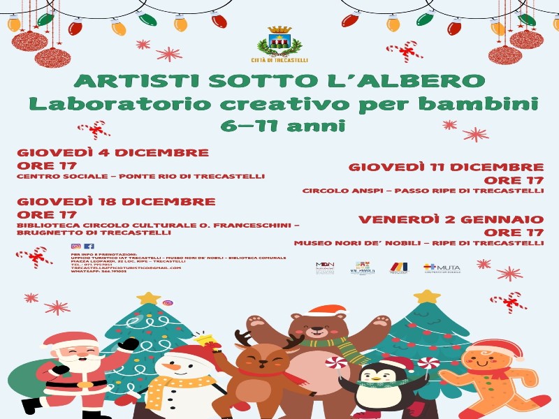 Proseguono a Trecastelli le festività natalizie con un ricco programma di eventi, tra cui spiccano ARTISTI SOTTO L’ALBERO: LABORATORIO CREATIVO, dedicati ai bambini dai 6 agli 11 anni.