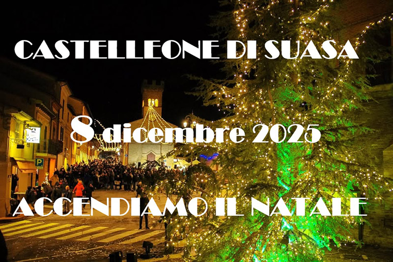 dalle ore 15:00 esibizione della Banda Cittadina, apertura della casetta di Babbo Natale, canzoni sotto l’albero a cura dei bambini e ragazzi delle Scuole di Castelleone di Suasa accensione delle luminarie, intrattenimento con spettacolo di fachirismo e mangiafuoco di “Otto Mix”, specialità gastronomiche a cura della Pro Suasa ed esercenti locali, esposizione e vendita di prodotti tipici ed articoli da regalo di produttori e commercianti locali, musica natalizia in filodiffusione, alla presenza di delegati Unpli Ancona e Tvrs;