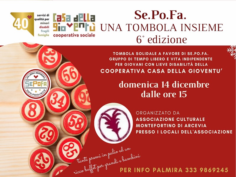 “Torna uno degli appuntamenti più attesi dell’anno! Come da tradizione, nella sede della nostra associazione, si rinnova la Tombola ‘Se. Po. Fa.’: domenica 14 Dicembre, dalle ore 15. Premi, divertimento e tanta compagnia non mancano!