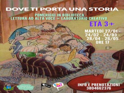il 27 gennaio alle ore 17 primo appuntamento dell’anno per bambine e bambini dai 3 anni in su con il progetto “Dove Ti Porta Una Storia” dove attraverso albi illustrati selezionati e laboratori creativi pensati ad ok le e i partecipanti potranno giocare e sperimentare fantasia e creatività.