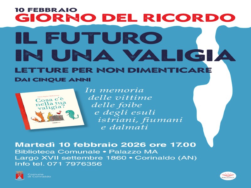 Martedì 10 febbraio, alle ore 17.00, presso la Biblioteca Comunale – Palazzo MA, si terrà l’incontro Letture per nondimenticare ispirato da libri che ricordano le vicende di quanti vissero il dramma delle foibe e di chi fu costretto ad allontanarsi dalle terre di Istria e Dalmazia. I libri diventano così uno strumento di memoria e consapevolezza. L’incontro è aperto a tutte le età, a partire dai cinque anni.