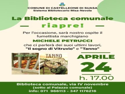 Giovedì 24 aprile alle ore 17:00 riapre la Biblioteca Comunale di Castelleone di Suasa