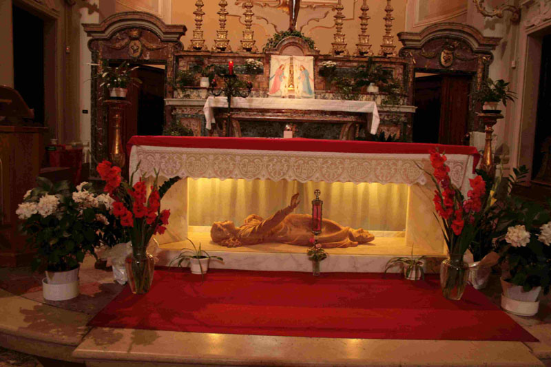 Sono 55 anni che l’insigne reliquia della Santa di Corinaldo viene accolta con molta devozione nella cittadina abruzzese. Per primo il rettore mons. Umberto Rocchetti, poi con i cappuccini Padre Stelvio e Padre Maurizio, ed ora con Don Franco Morico hanno accompagnato a San Benedetto Dei Marsi, ogni fine agosto, la Reliquia della Santa, scortata dai motociclisti di Corinaldo e di San Benedetto dei Marsi e da molte auto fino alla cappellina a Lei intitolata. Per due giorni la popolazione abruzzese tributa solenni festeggiamenti a Santa Maria Goretti, compatrona del paese. Sabato 25 agosto 2007 l’amministrazione comunale di S. Benedetto dei Marsi ha indetto un Consiglio straordinario per sancire il gemellaggio fra le due municipalità. Parteciperà una delegazione della città di Corinaldo, con a capo il sindaco Livio Scattolini, mentre per la cittadina abruzzese interverranno il sindaco di San Benedetto Arnaldo Santilli, il presidente della Comunità Montana Luciano Ippoliti, il capogruppo consiliare UDC Giovanni Di Genova. Saranno presenti il parroco di San Benedetto dei Marsi don Francesco Iulianella e il rettore del Santuario di Santa Maria Goretti di Corinaldo don Franco Morico. Il giorno successivo Santa Messa alle ore 11.00 e, nel pomeriggio, solenne processione con la Statua e l’Insigne reliquia della Santa.