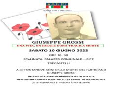 Sabato 11 giugno un evento promosso dall'Anpi per commemorare il partigiano Giuseppe Grossi